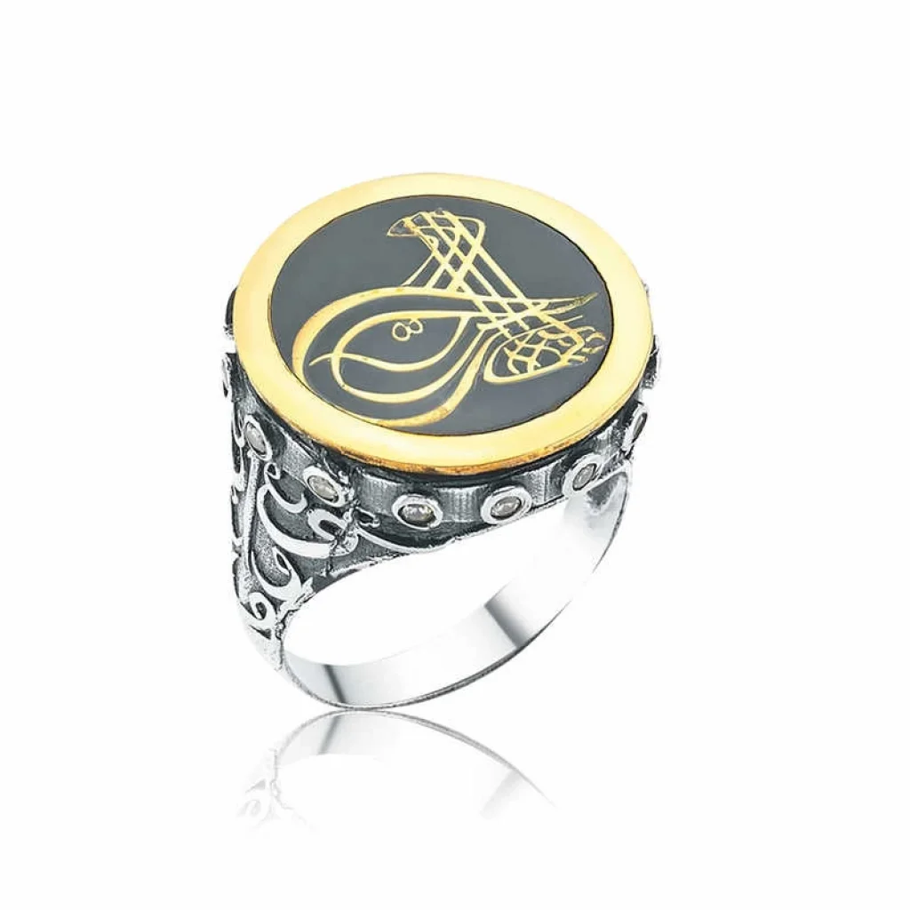 Tuğra, Osmanlı sultanlarının imzası anlamına gelir. Her tuğra; ona ait olan padişahın ismini, varlığını, hükümdarlığını ifade eder. Tuğra sembolü her padişaha göre farklı olmak üzere birçok şekilde günümüze ulaşmıştır. Tuğra Osmanlının her döneminde korunmuş, önemini hiç kaybetmemiştir. Ve zamanla hat sanatımızda da önemli bir yere sahip olup, günümüzde hattatlar tarafından sanatsal olarak yaşatılmaktadır. Bu sanatı yansıtan gümüş yüzüğü severek kullanabilir ve sevdiklerinize hediye edebilirsiniz. Gümüş tuğralı erkek yüzük 925 ayar gümüşten imal edilmiştir. Tuğralı yüzük gümüş üzerine oksit kaplama yapılmıştır.Tüm gümüş erkek yüzüklerde olduğu gibi gümüş tuğralı erkek yüzüğünde tamamı el emeği ile üretilmiştir. Gümüş ve değerli taşlar nedeniyle belirtilen ortalama ürün ağırlığında ± %10 sapma olabilmektedir.