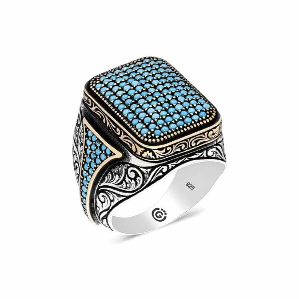 Gümüş Turkuaz Zirkon Taşlı Kare Erkek Yüzük