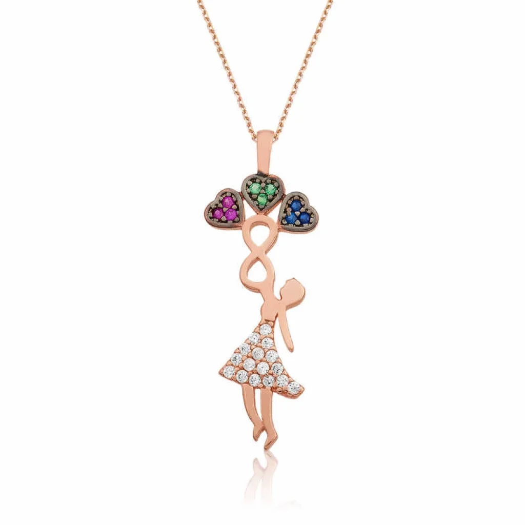 Aşkınızı bütün saflığı,tamizliği ve sonsuzluğuyla anlatmanız için tasarladığımız bu rengarenk kolye ile hayata ışıl ışıl sevgi penceresinden bakmaya ne dersiniz? Bu şıklığı; doğum günü hediyesi, sevgililer günü hediyesi veya annelere hediye olarak özel günlerde tercih edilebilecek mükemmel bir seçenektir. Bu şık kolye; 925 ayar gümüşten imal edilmiştir. Gümüş kolye üzerine rose kaplama yapılmıştır. Rose kaplama yapılan bayan kolyeler parlaklığını uzun süre muhafaza eder, gümüş rengini pembe renge dönüştürür ve oksitlenmeyi geciktirir. Zincir boyu ortalama 45 cm"dir. Tüm gümüş bayan kolyelerde olduğu gibi bu gümüş üç kalp tutan bayan kolye de tamamı el emeği ile üretilmiştir. Kolye üzerindeki taşlar zirkondur. Gümüş ve değerli taşlar nedeniyle belirtilen ortalama ürün ağırlığında ± %10 sapma olabilmektedir.