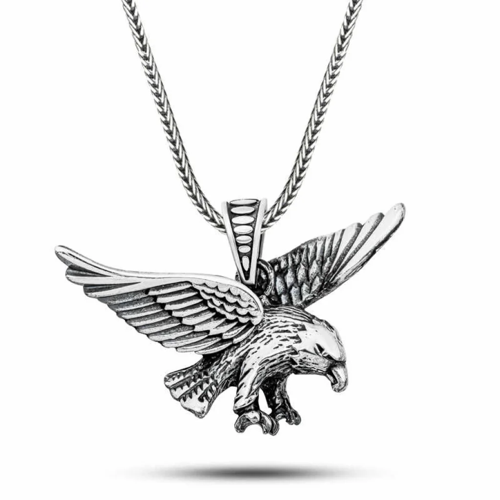 Gücün,özgürlüğün ve yüksek ideallerin sembolü olan kartal figürüyle tasarlanmış bu şık kolye,cesur ve özgün stilinizi tamamlayacak.Kartalın keskin bakışı ve güçlü kanat detaylarıyla işlenen bu özel tasarım,doğadan ilham alan stil sahibi erkekler için mükemmel bir tercihtir.Günlük kullanıma uygun olduğu gibi özel günlerde de fark yaratmak isteyenler için ideal bir aksesuardır.Gümüş üzerine oksit kaplama yapılmıştır.Oksit kaplama yapılan gümüş kolyeler parlaklığını uzun süre muhafaza eder,oksitlenmesi gecikir.Ürünlerimizin tamamı el emeği ile üretilmiştir. Gümüş ve değerli taşlar nedeniyle belirtilen ortalama ürün ağırlığında ± %10 sapma olabilmektedir.