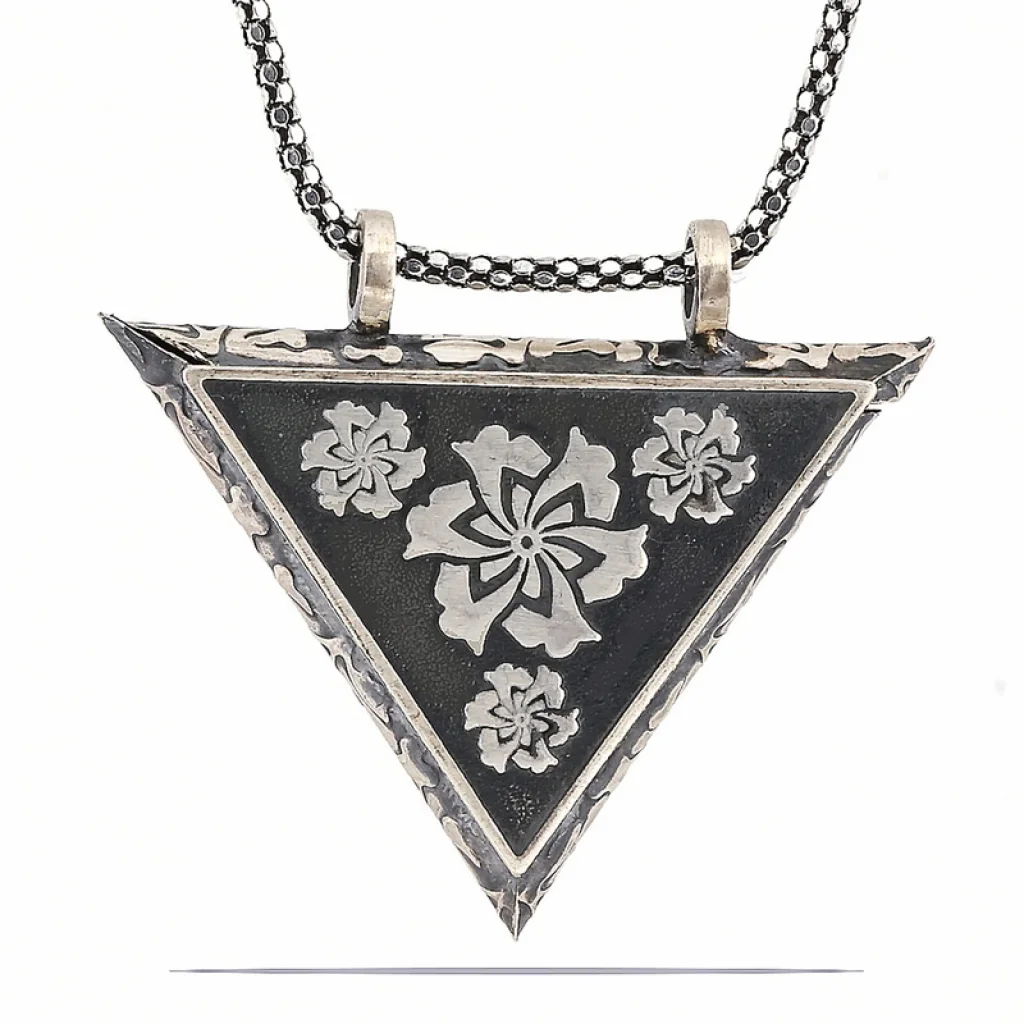 Gümüş Üçgen İçi Açılabilen Çiçek Muskalık Kolye