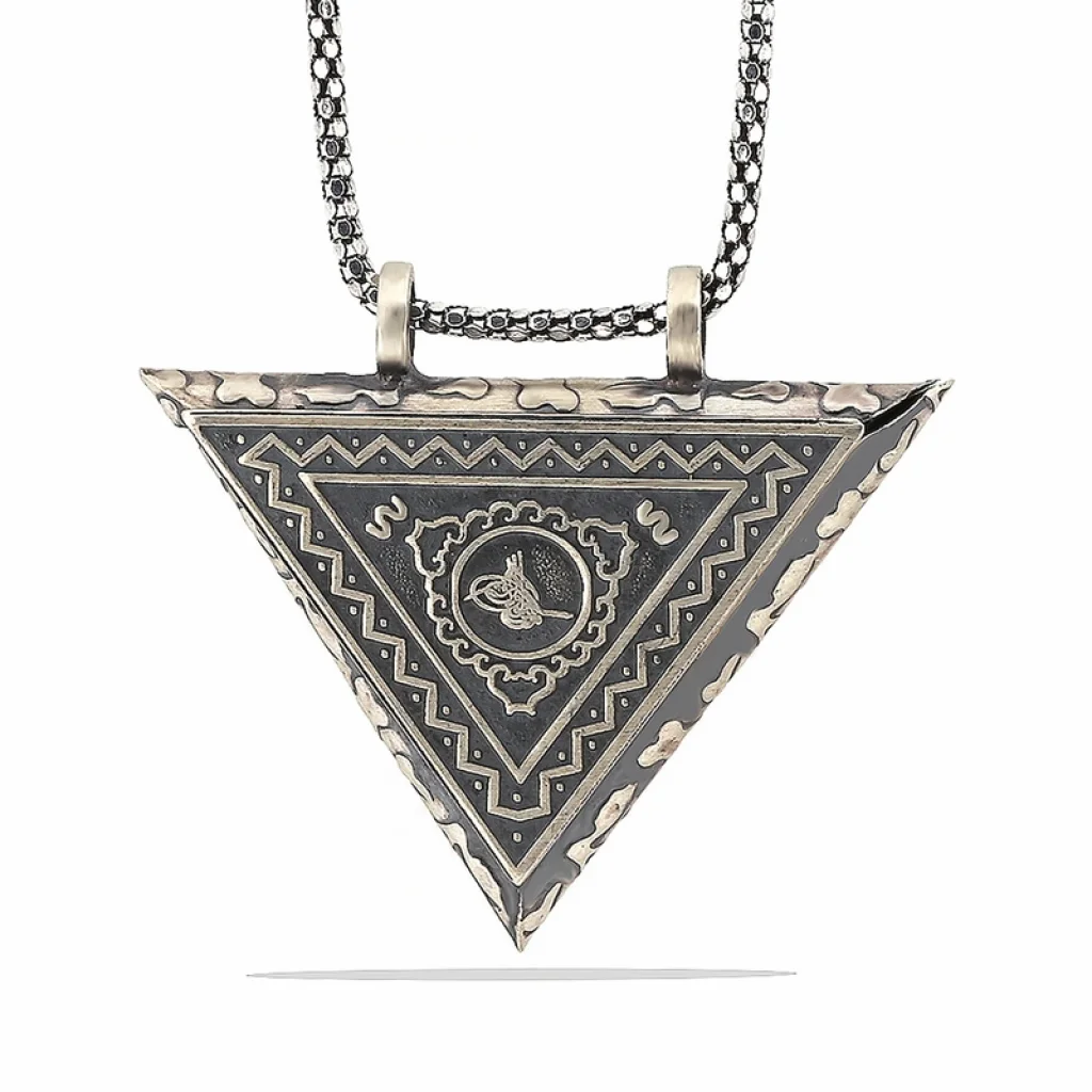 Gümüş Üçgen İçi Açılabilen Tuğra Muskalık Kolye