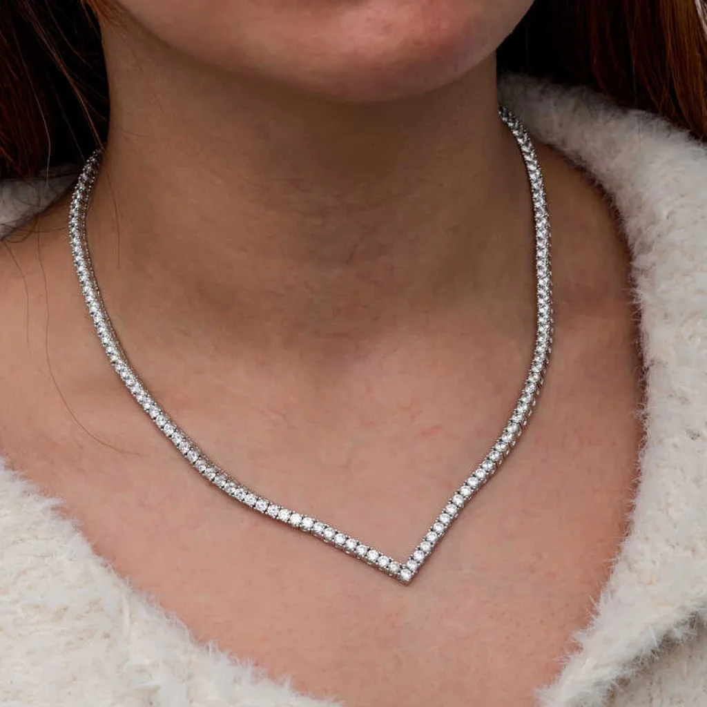 Gündelik hayatta, özel günler ve gecelerde tercih edebileceğiniz ışıl ışıl taşları ile yıldızları anımsatan bu kolyeyi severek kullanacaksınız. Şık bir görünüm yakalamak isteyen tüm kadınlara hitap eden, modası geçmeyecek olan v model su yolu gümüş kolye sizleri bekliyor. Gümüş beyaz taşlı su yolu kadın kolye; doğum günü hediyesi, sevgililer günü hediyesi veya annelere hediye olarak özel günlerde tercih edilebilecek mükemmel bir seçenektir. Gümüş beyaz taşlı su yolu kadın kolye 925 ayar gümüşten imal edilmiştir. Gümüş üzerine rodyum kaplama yapılmıştır. Rodyum kaplama yapılan kadın kolye parlaklığını uzun süre muhafaza eder ve oksitlenmesi gecikir. Tüm kadın kolyelerde olduğu gibi gümüş beyaz taşlı su yolu kadın kolye de el emeği ile üretilmiştir. Gümüş ve değerli taşlar nedeniyle belirtilen ortalama ürün ağırlığında ± %10 sapma olabilmektedir.