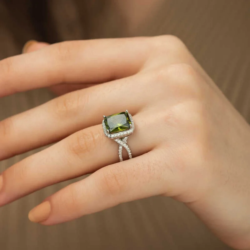Gümüş Yeşil Baget Bayan Yüzük