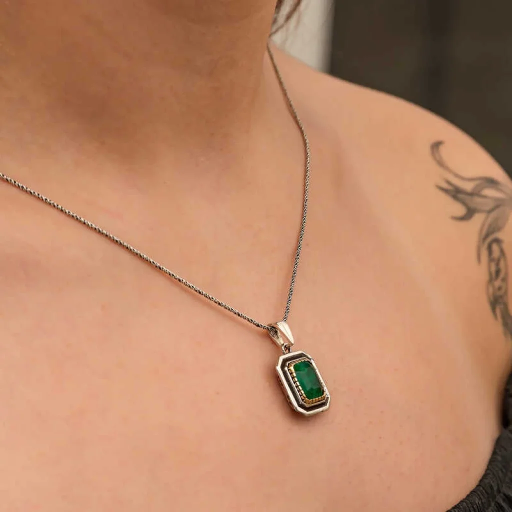Gümüş Yeşil Taşlı Otantik Kadın Kolye