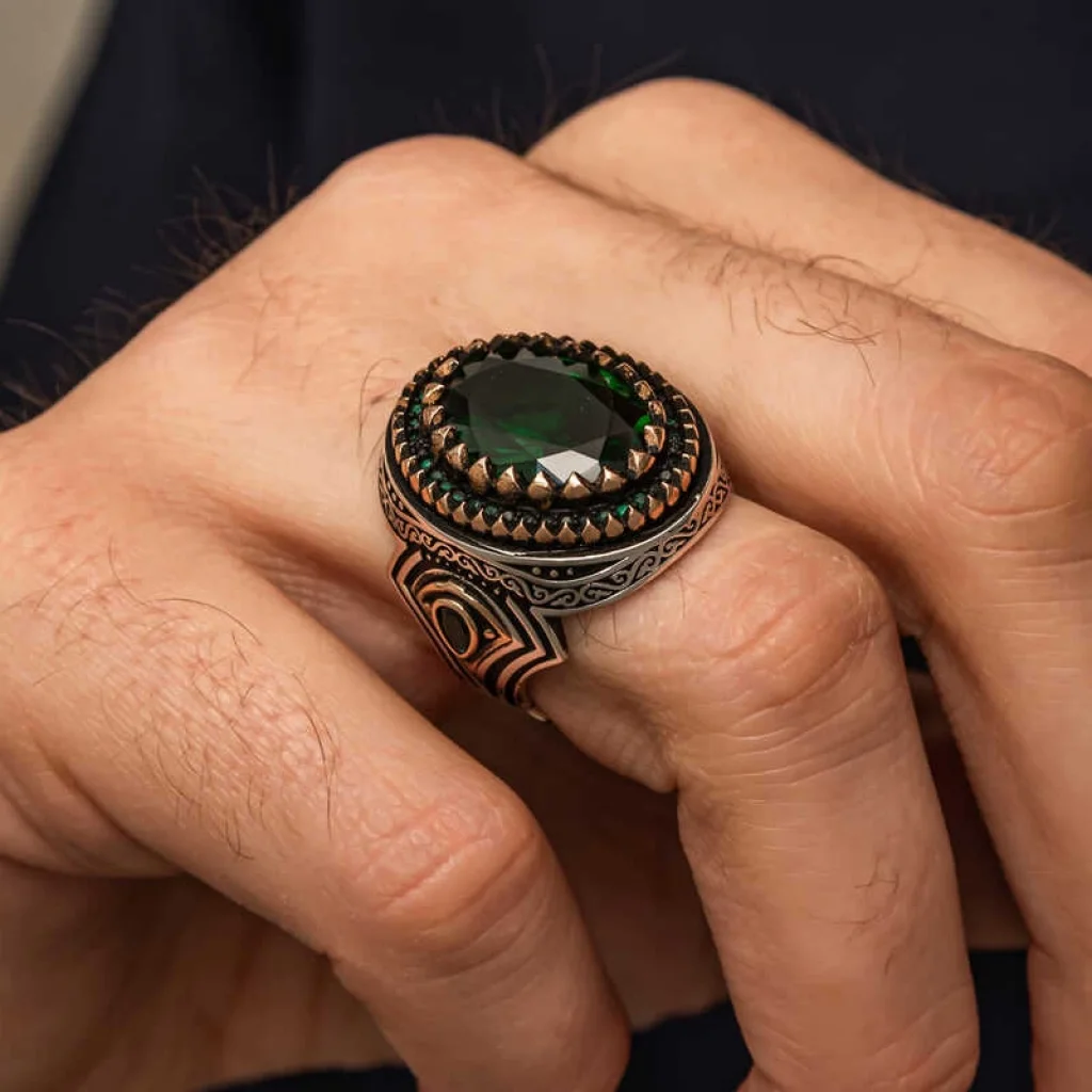 Gümüş Yeşil Zirkon Taşlı Erkek Yüzük