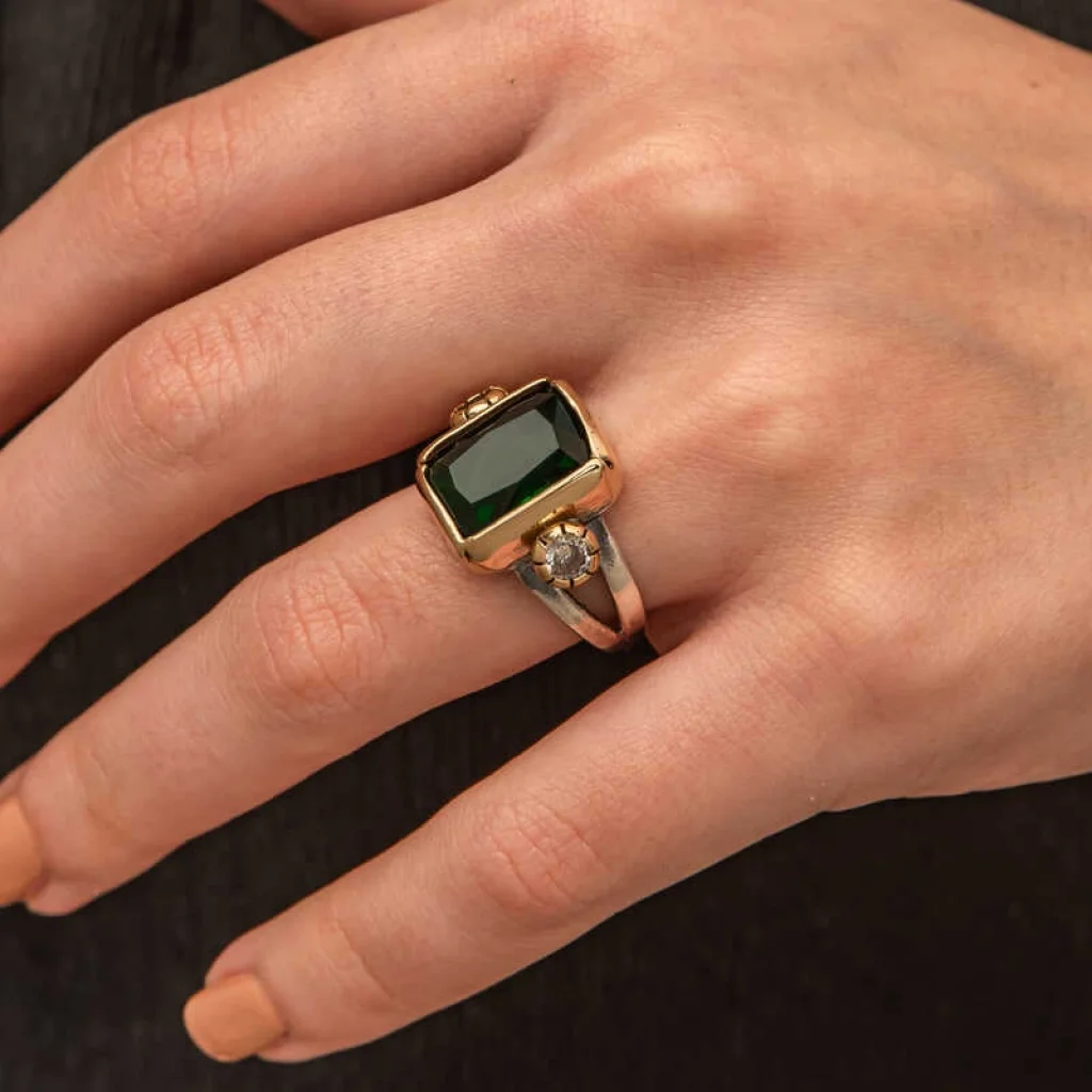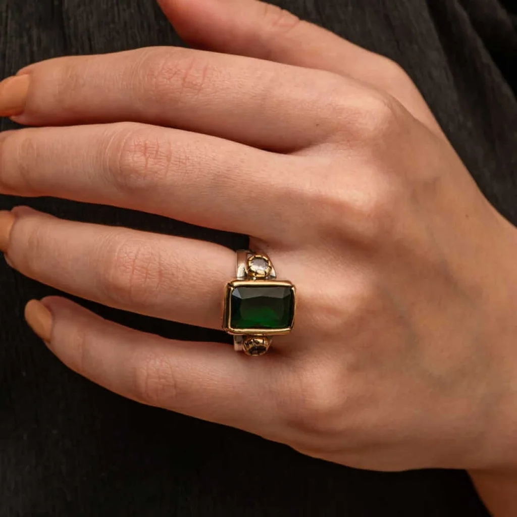 Gümüş Yeşil Zirkon Taşlı Otantik Kadın Yüzük