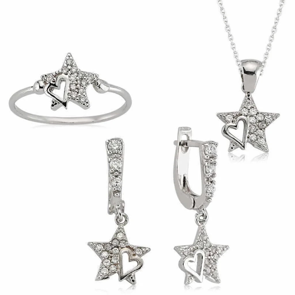 Gecenin parlak ışıltısını anımsatan yıldız, sembolik olarak evrenin sonsuzluğunu, uzaktaki bir noktayı ifade eder. Parıltının, ışığın, aydınlığın ve umudun sembolüdür. Her insan özel, her sevilen eşsizdir. Eşsiz sevginin ömür boyu sürecek birlikteliğin simgesi gümüş yıldız bayan set ile sevdiklerinizi mutlu etmeye ne dersiniz? Bu şık set 925 ayar gümüştür. Gümüş üzerine rodyum kaplama yapılmıştır. Rodyum kaplama yapılan setler parlaklığını uzun süre muhafaza eder ve oksitlenmeyi geciktirir. Üzerinde bulunan beyaz taşlar zirkondur. Zincir boyu ortalama 45 cm"dir. Tüm gümüş bayan setlerin tamamında olduğu gibi gümüş yıldız bayan set de el emeği ile üretilmiştir. Gümüş ve değerli taşlar nedeniyle belirtilen ortalama ürün ağırlığında ± %10 sapma olabilmektedir.