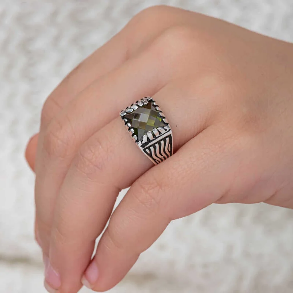 Gümüş Zeytin Yeşili Zirkon Taşlı Çocuk Erkek Yüzük