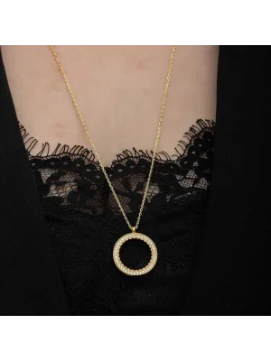 Gümüş Zirkon Sıra Taşlı Gold Kadın Kolye