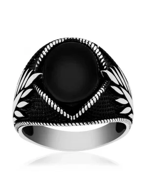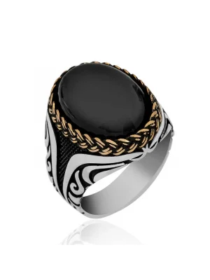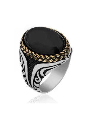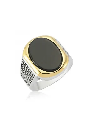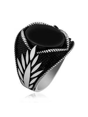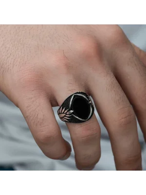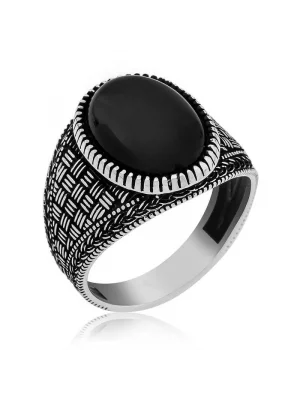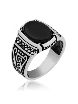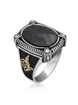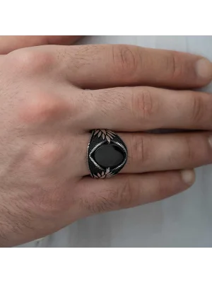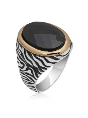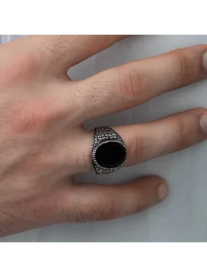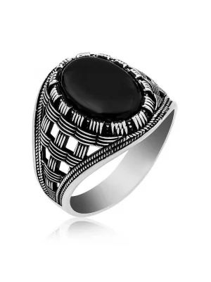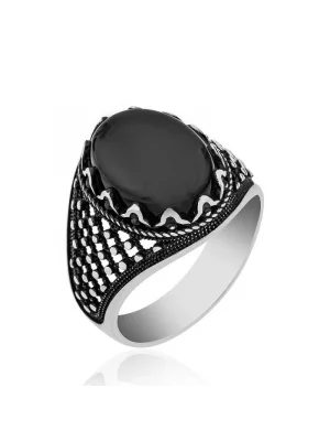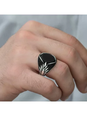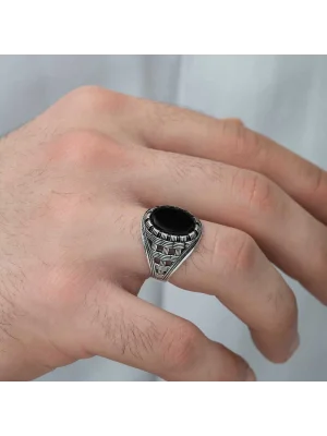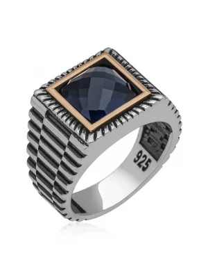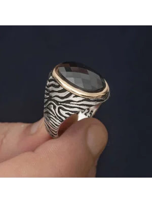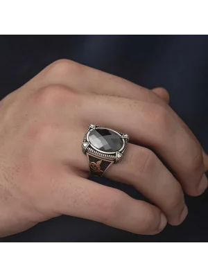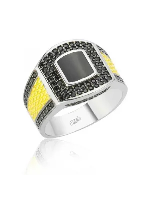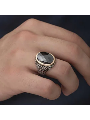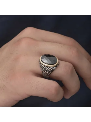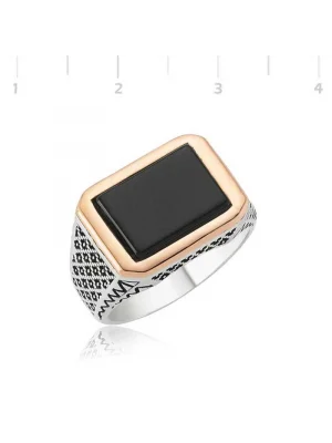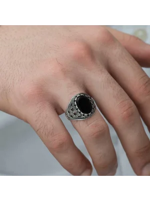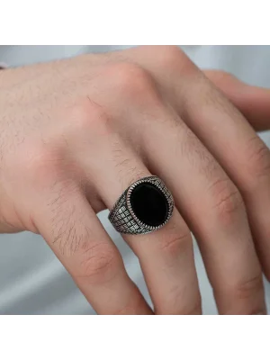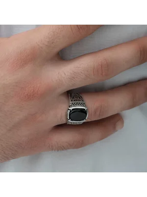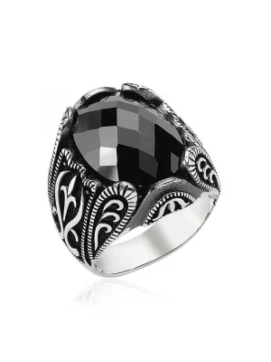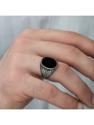 Gümüş Zirkon Siyah Taşlı Kare Erkek Yüzük