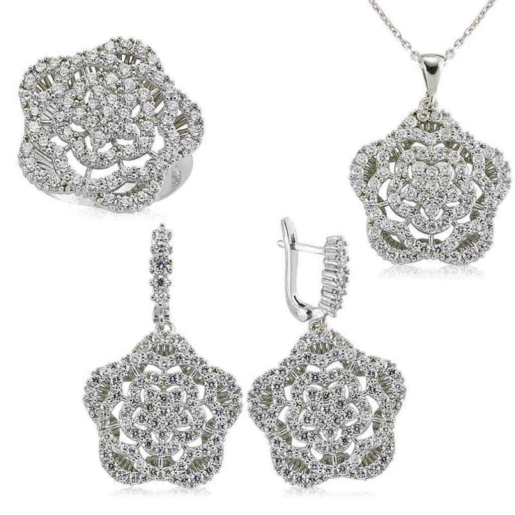 Gümüş Zirkon Taşlı Çiçek Bayan Set