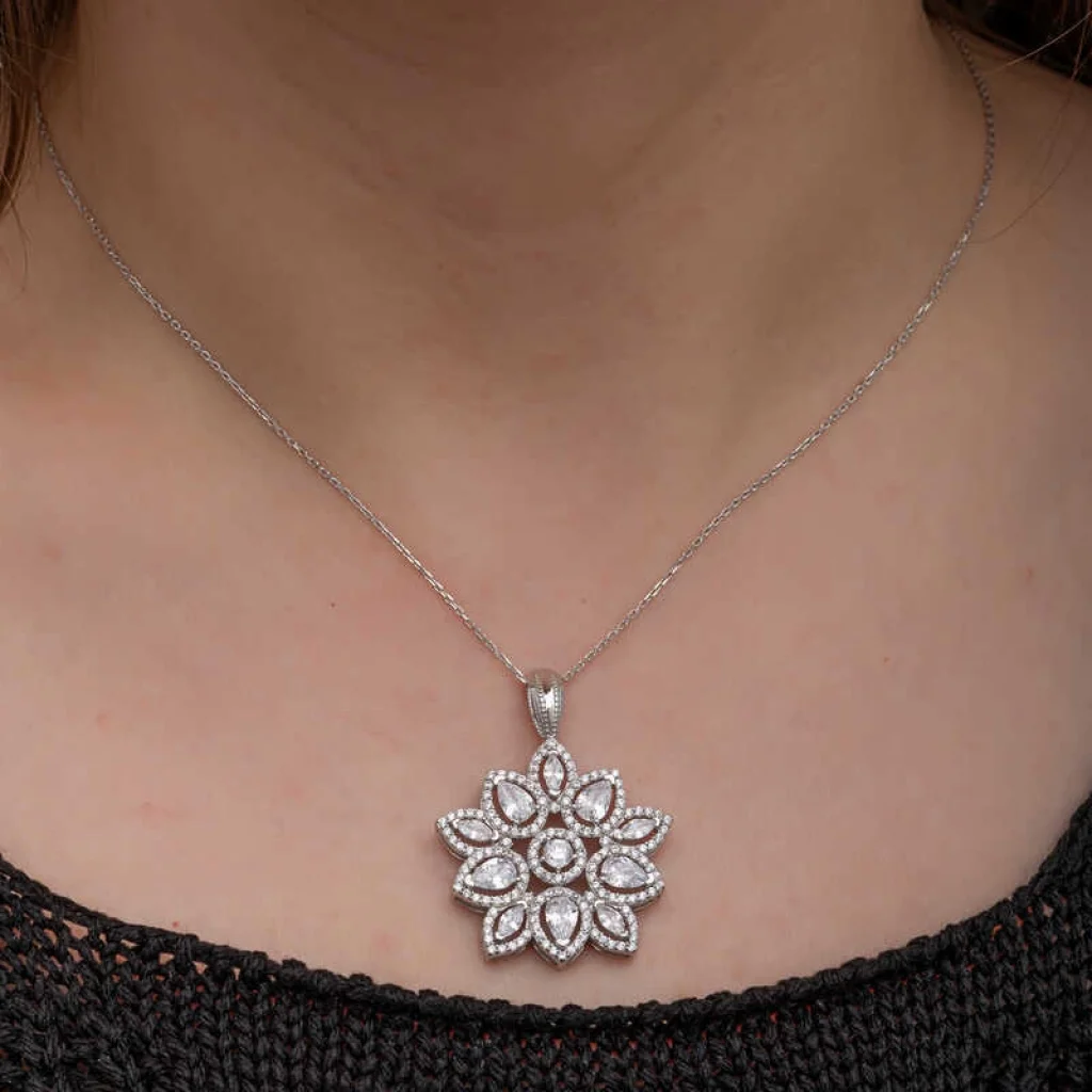 Gümüş Zirkon Taşlı Çiçek Kadın Kolye