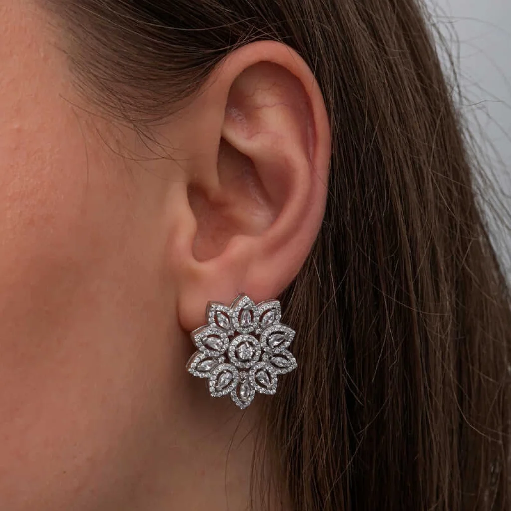 Gümüş Zirkon Taşlı Çiçek Kadın Küpe