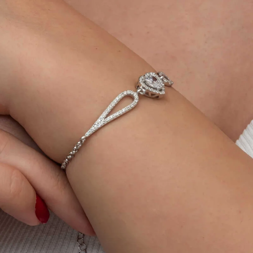 Gümüş Zirkon Taşlı Kalp Bileklik