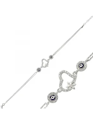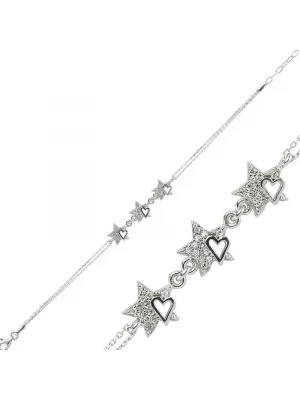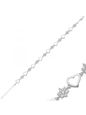 Gümüş Zirkon Taşlı Sıralı Kalp Kadın Bileklik