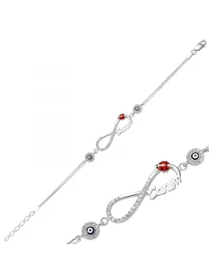 Sonsuzluk sembolü,sonu olmayan bir şeyi,bitmeyen sevgiyi,dostluğu veya bağlılığı temsil eder.Romantik ilişkilerde, iki kişi arasında süregelen ve sonsuz olan aşkı simgeler.Aile veya arkadaşlık bağlarını üst seviyede temsil eder;sevdiklerinizle olan kalıcı bağlılığınızı ifade eder.Zirkon taşlı sonsuzluk kadın bileklik modeli 925 ayar gümüşten imal edilmiştir.Rodyum kaplama yapılan kadın bileklikler parlaklığını uzun süre muhafaza eder,oksitlenmesini geciktirir.Tüm gümüş kadın bileklik modellerinde olduğu gibi bu gümüş sonsuzluk kadın bileklik de tamamı el emeği ile üretilmiştir. Gümüş ve değerli taşlar nedeniyle belirtilen ortalama ürün ağırlığında ± %10 sapma olabilmektedir.