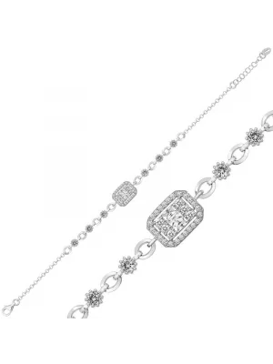 Gümüş Zirkon Taşlı Yuvarlak Kadın Bileklik