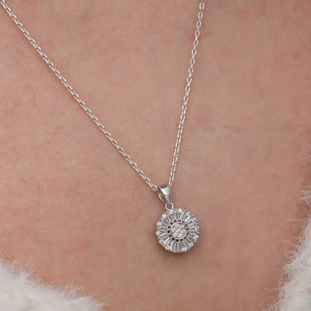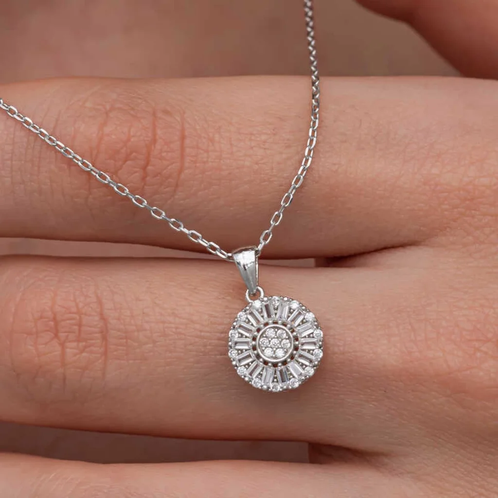 Gümüş Zirkon Taşlı Yuvarlak Kadın Kolye