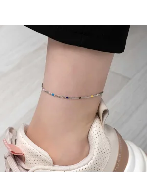 Gümüş Rose Renkli Taşlı Kadın Halhal