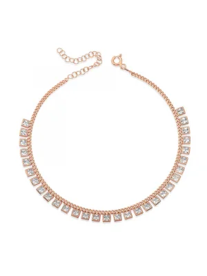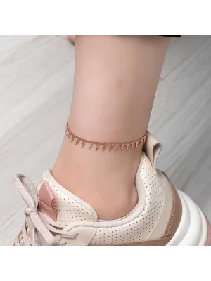 Gümüş Rose Çift Zincirli Kalp Zirkon Taşlı Halhal