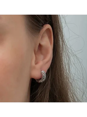 Gümüş Petek Desenli Halka Kadın Küpe