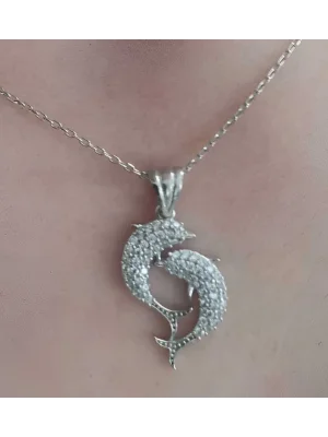 Gümüş Rose Çift Yunus Balığı Kadın Kolye