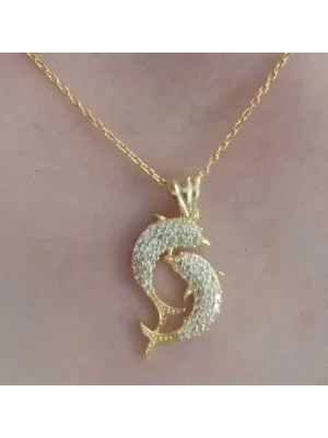 Gümüş Gold Çift Yunus Balığı Kadın Kolye
