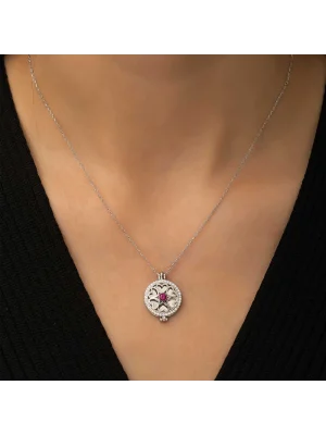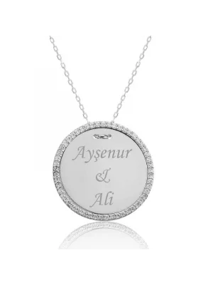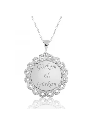 Gümüş Rose Yuvarlak İsimli Bayan Kolye