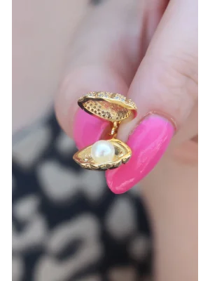 316L Çelik Gold Renk Açılır Midye Model Kadın Kolye