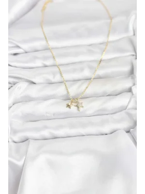 Gold Renk Pirinç Yıldız Zirkon Taşlı Kadın Kolye