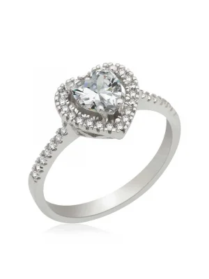 Gümüş Beyaz Taşlı Kalpli Kadın Yüzük