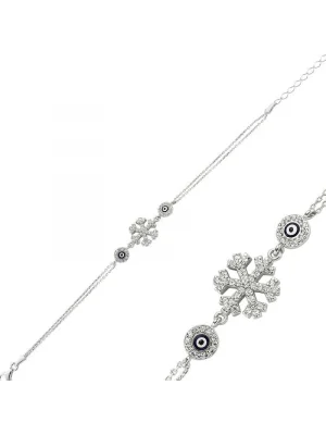 Gümüş Nazarlı Kar Tanesi Kadın Bileklik