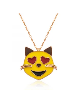 Gümüş Kalp Gözlü Kedi Emoji Bayan Kolye