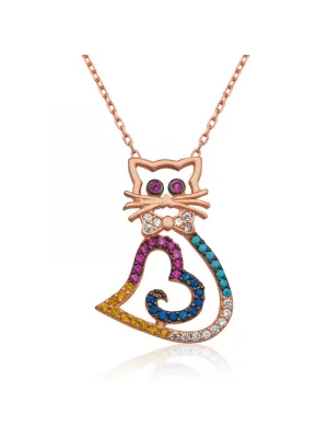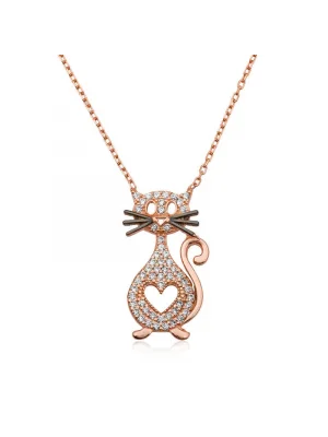 Gümüş Rose Kedi Kadın Kolye