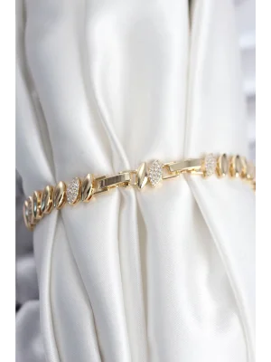 Mineli Pirinç Pembe Çiçek Motifli Gold Kadın Kelepçe