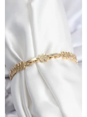 Mineli Pirinç Yeşil Sarmal Desenli Gold Renk Kadın Kelepçe