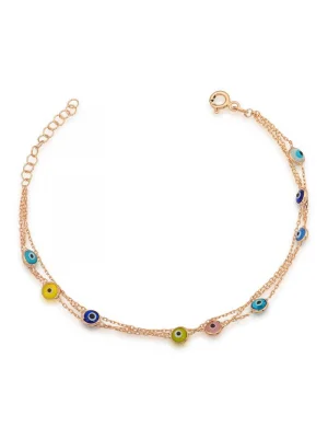 Gümüş Gold Çift Zincirli Nazar Kadın Bileklik