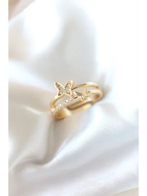 Pirinç Ayarlamalı Gold Renk Zirkon Taşlı Bombeli Kalp Yüzük