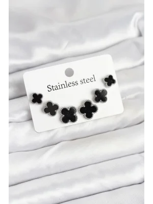 Pirinç Gold Renk Kare Model Zirkon Taşlı 3'Lü Model Kadın Kıkırdak Küpe