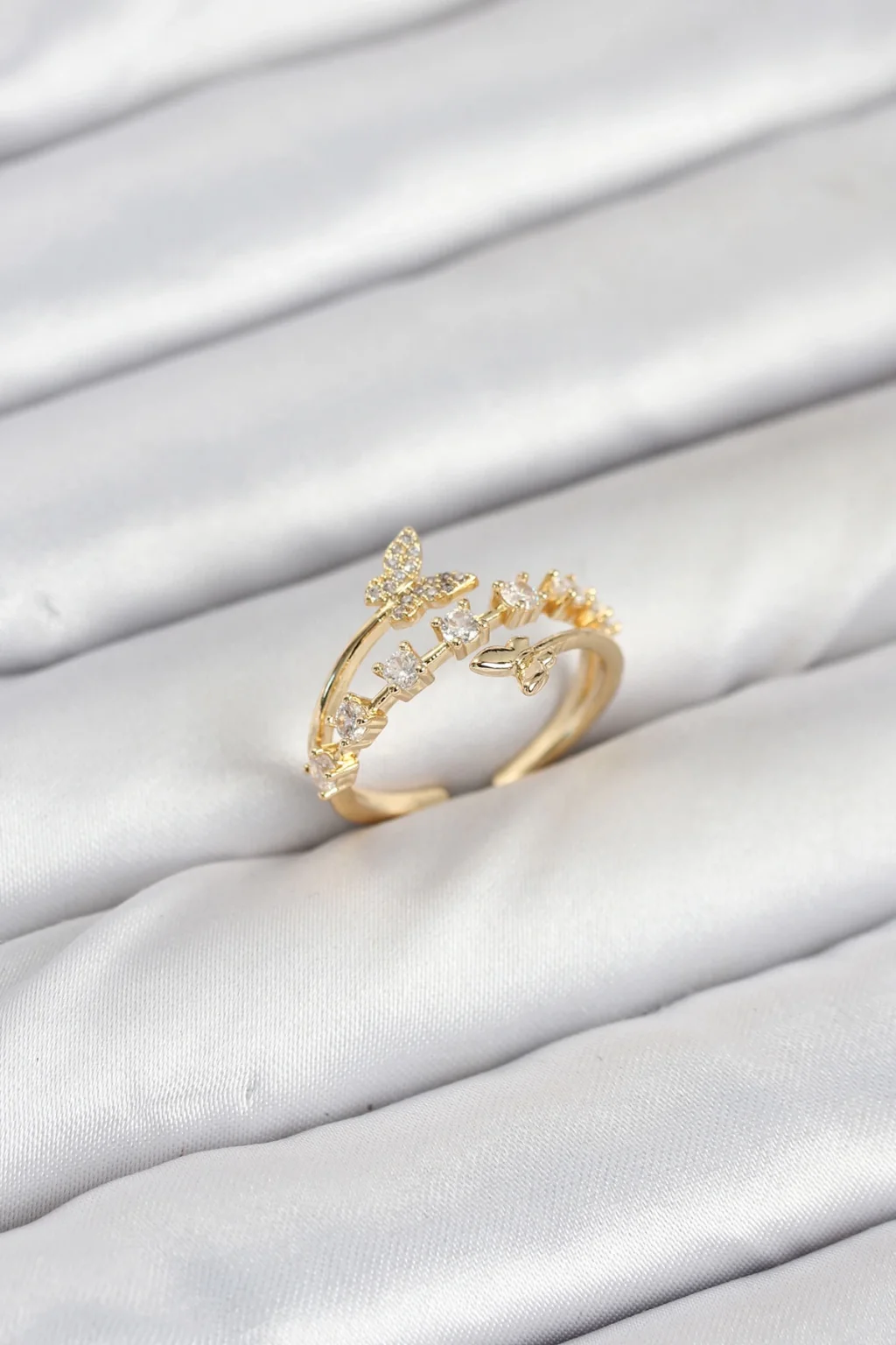 Pirinç Gold Renk Zirkon Taşlı Kelebek Model Kadın Yüzük