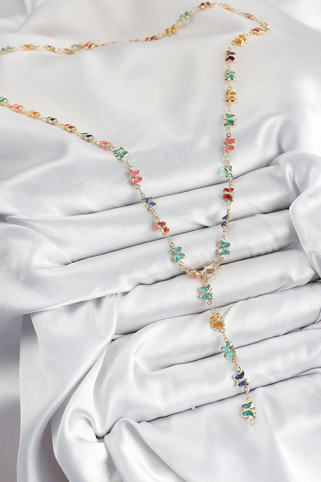 Pirinç Renkli Zirkon Taşlı Kelebek Model Gold Renk Kadın Y Kolye