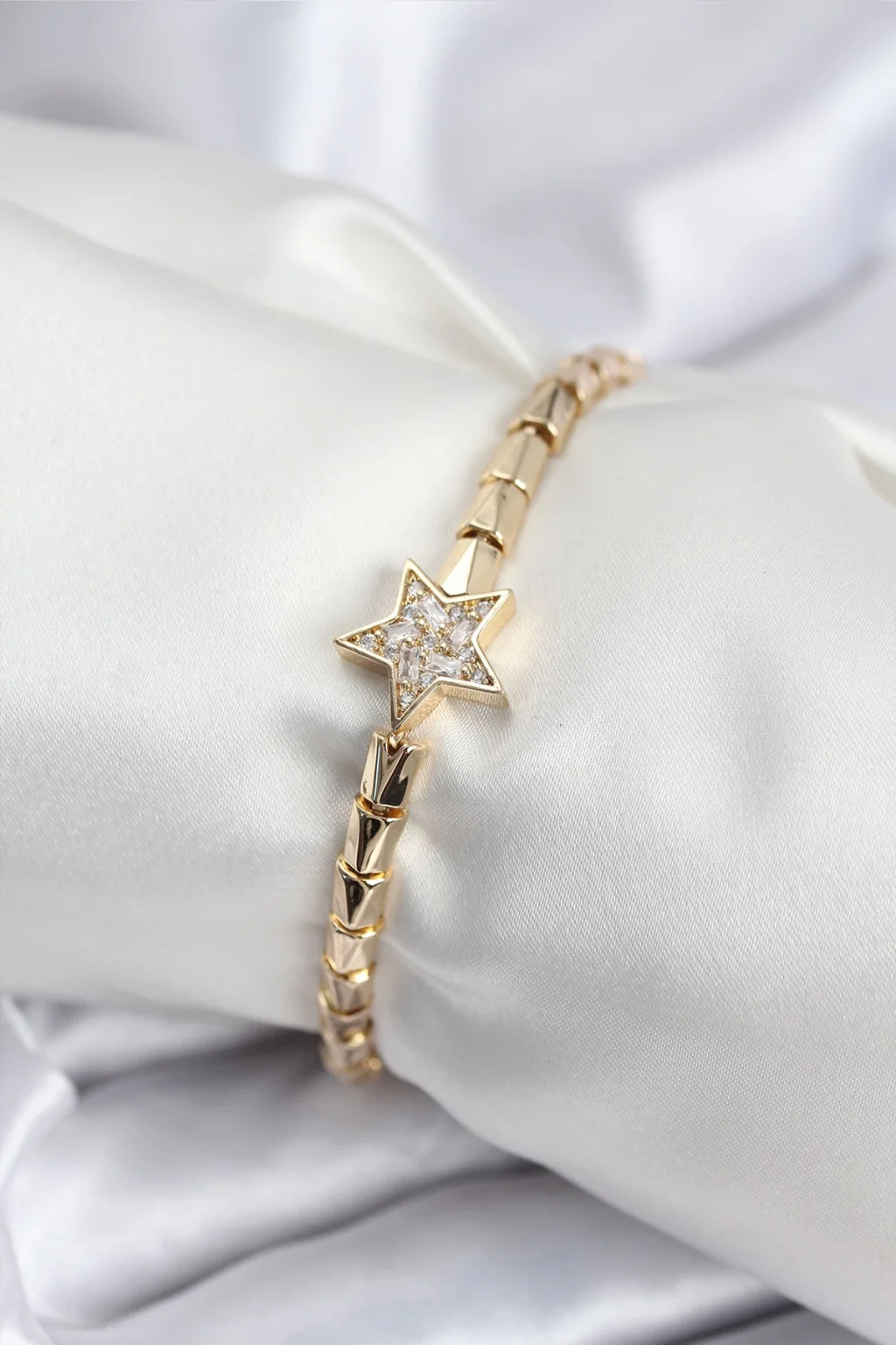 Pirinç VIP Seri Gold Renk Zirkon Taşlı Yıldız Model Kadın Bileklik
