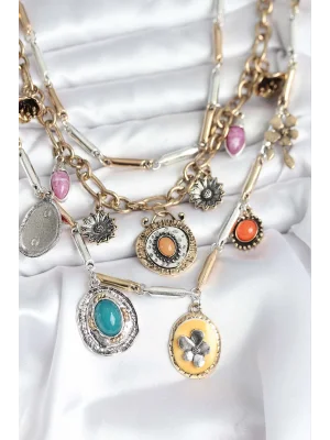 - Ürün materyali pirinçtir.- Ürün zincir uzunluğu 45cm dir.- Dikkatli kullanımda kararma, renk atma olmaz. - Ayrıca teninizin bijuteri , kaplama ürünleri kullanmaya uygun olması gerekmektedir. (Bazı tenlerin karartma yaptığı unutulmamalıdır.)- Sağlıklı ve mutlu günlerde kullanmanız dileğiyle…