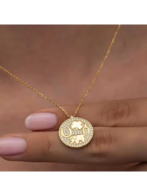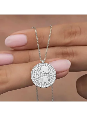 Gümüş Gold Fil Motifli Şans Kadın Kolye