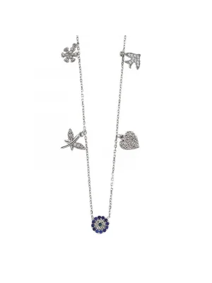 Gümüş Rose Nazarlı Şans Bayan Kolye