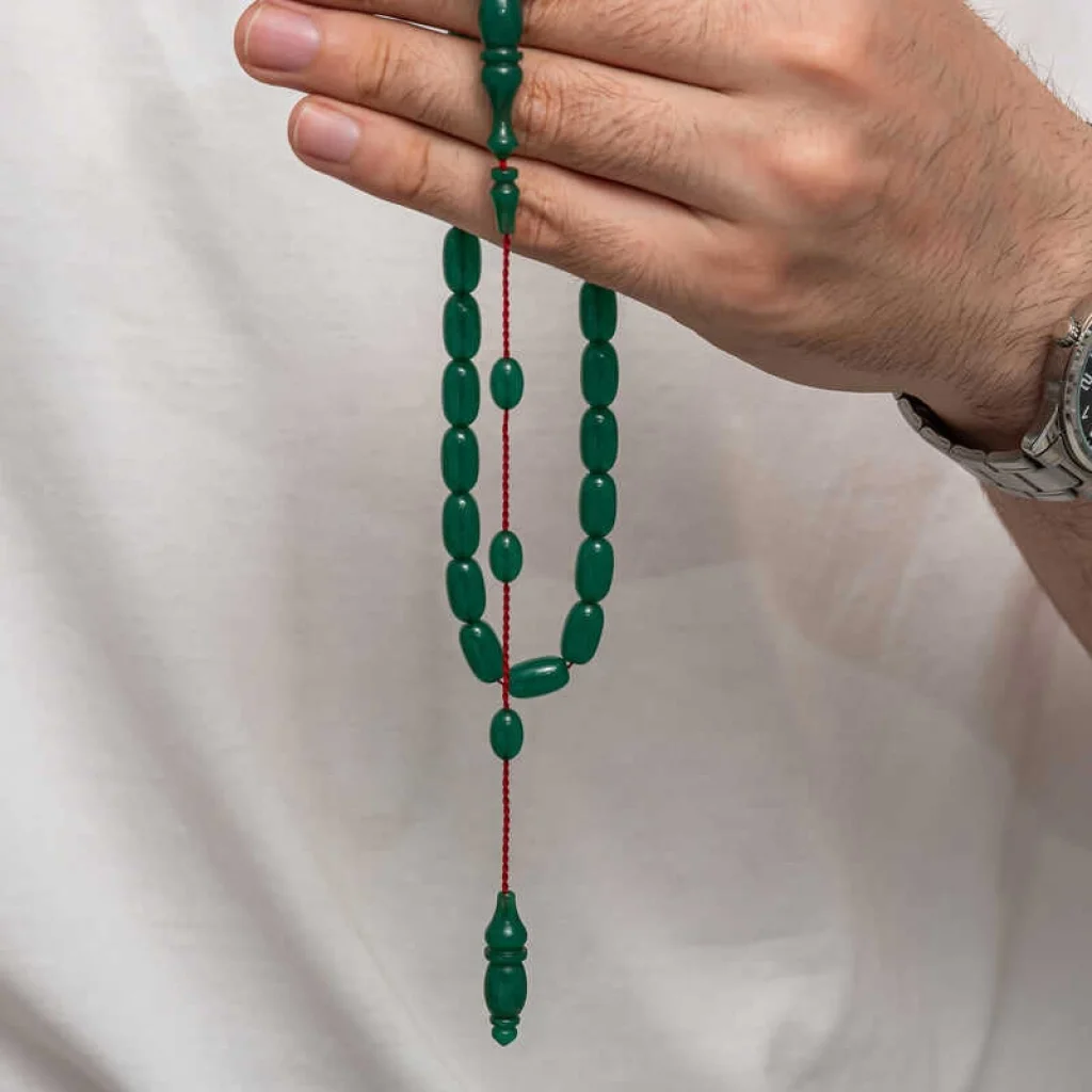 Kehribar, çam ağacı reçinesinin toprak altında uzun yıllar boyunca birikerek oluşan bir maddedir. Hemen hemen taş ile aynı sertliktedir fakat yoğunluğu düşüktür. Çam kokusu yayar. Oluşumu uzun zaman aldığından ve yapay olarak yapılamadığından değerli bir maddedir. Sıkma kehribar ise kehribar taşından farklı olarak onun özelliklerini taşıyan, görüntü itibariyle ona benzeyen fakat gerçek olmayan bir malzemedir. Ülkemizde ve dünyanın bir çok yerinde kehribar taşından çeşitli malzemeler üretilmiştir. Ülkemizde en yaygın olarak tesbih üretilmektedir. Kehribar tesbihler elde ısındıkça kehribar benzeri bir koku verir ve renk değiştirir. Bir çok rengi vardır. Hatta iki rengin birleşiminden oluşan kehribar tesbih modelleri de vardır.Ülkemizin güzide tesbih ustaları bu malzemeyi sıklıkla işlemek suretiyle çeşitli sanat eserleri meydana getirirler. Bu tesbihler de koleksiyonerler tarafından alınıp satılmaktadır. Sıkma kehribar tesbih modeli de günlük hayatta kullanılabilecek çok şık bir tesbih çeşididir. Özel günlerin vazgeçilmez hediyesi sıkma kehribar tesbihler erkekler için doğum günü, sevgililer günü ve babalar günü gibi özel zamanlarda hediye olarak tercih edilebilir.Sıkma kehribar tesbih modeli diğer kehribar tesbih modellerinde olduğu gibi tamamen el emeği ile imal edilmiştir.