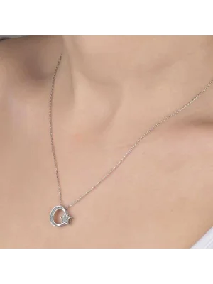 Swarovski Crystal Taşlı Top Zincir Salkım Gümüş Kadın Kolye