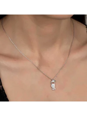 Swarovski Crystal Taşlı Top Zincir Siyah Elmas Gümüş Kadın Kolye
