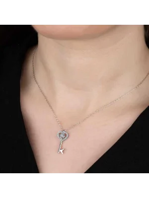 Swarovski Taşlı Gümüş Tektaş Bayan Kolye